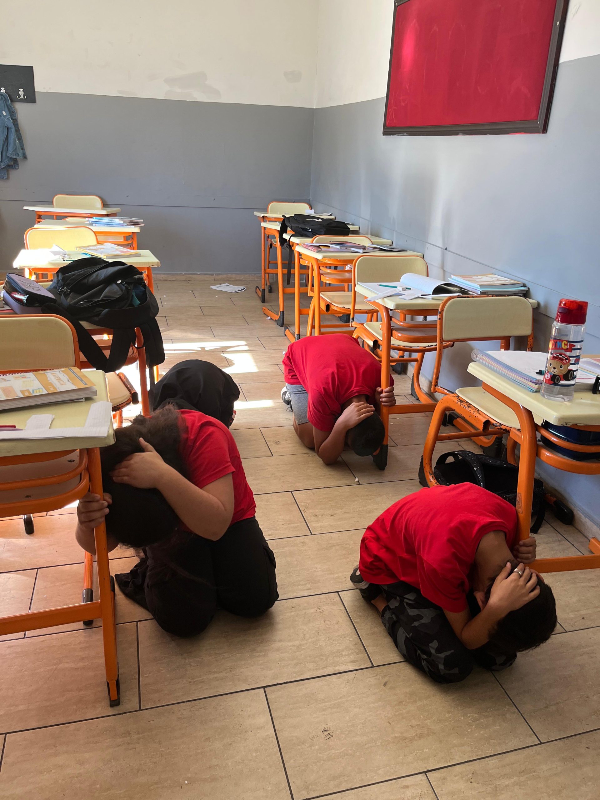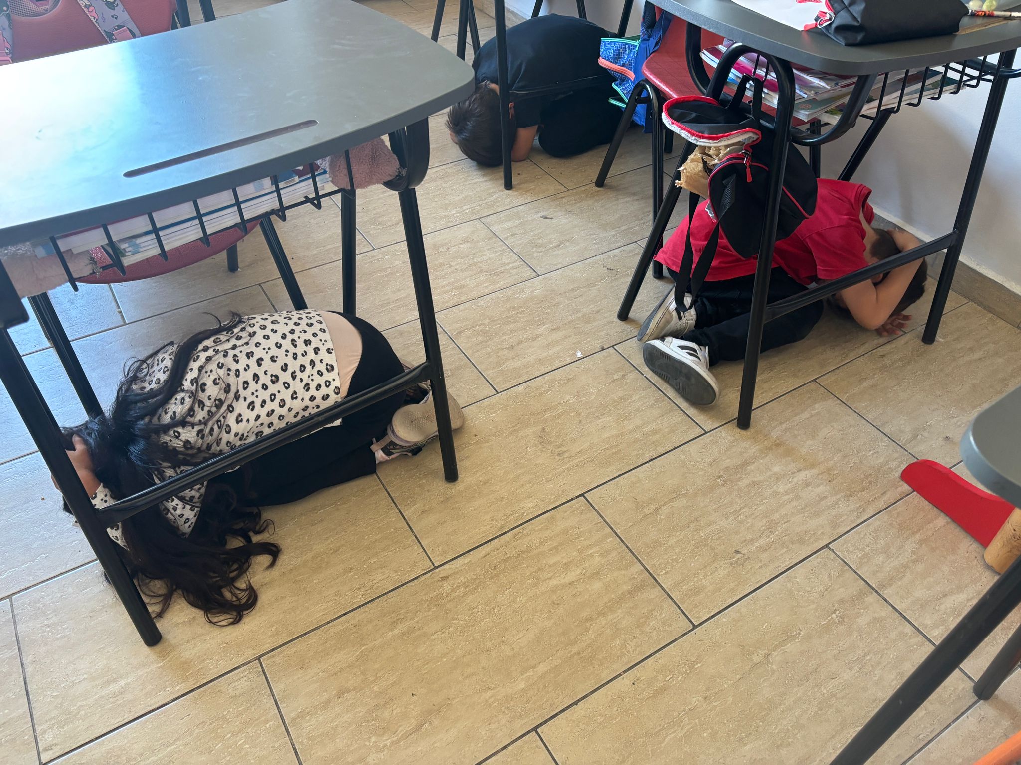 🔔 İlk siren sesiyle birlikte öğrencilerimiz sınıflarında sıralarının altına geçerek yaşam üçgeni pozisyonu aldı.